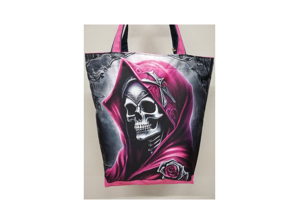 Taška nákupní kočárkovina - Kostlivec s růžovou kápí