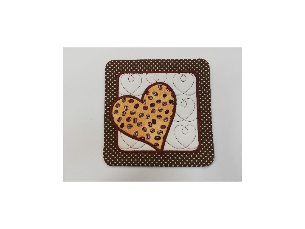Textilní prostírání na stůl čtverec 19 cm - kávové srdce v bílé na hnědé
