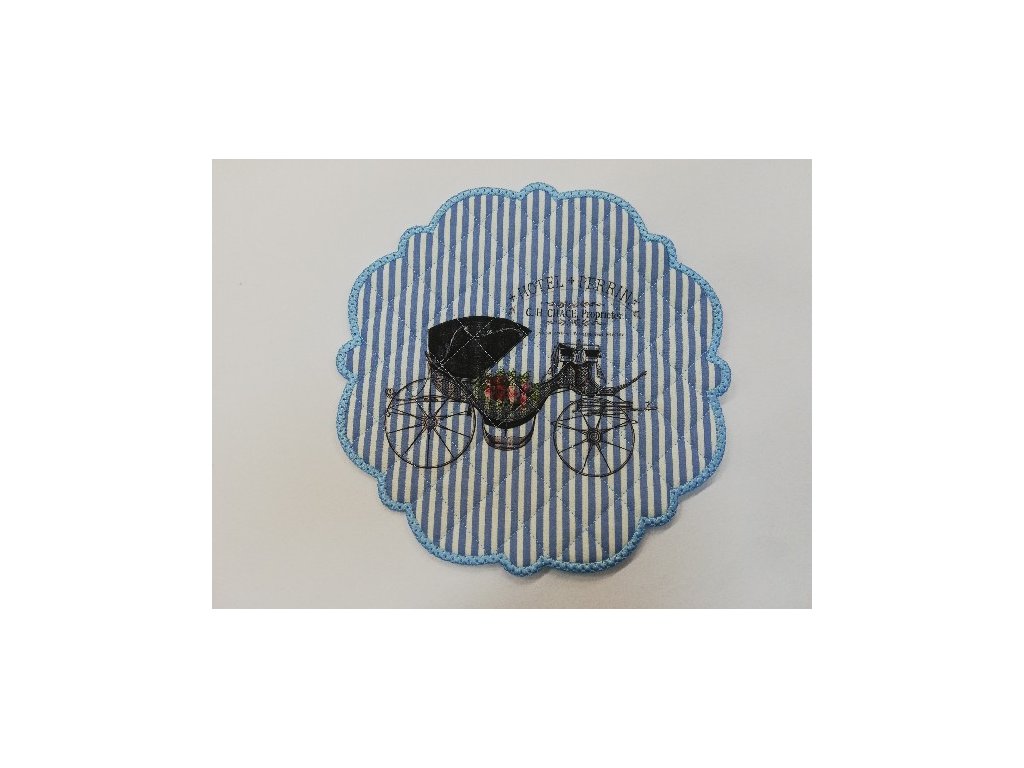Textilní prostírání na stůl kulaté 20cm - modré - kočár