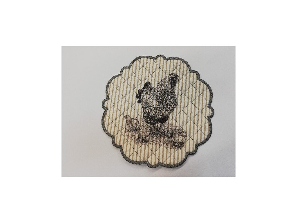 Textilní prostírání na stůl kulaté 20cm - šedé - slepice
