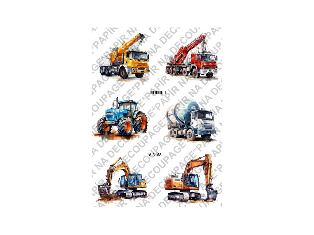 Rýžový a soft papír na decoupage - Stavební stroje - KB3158