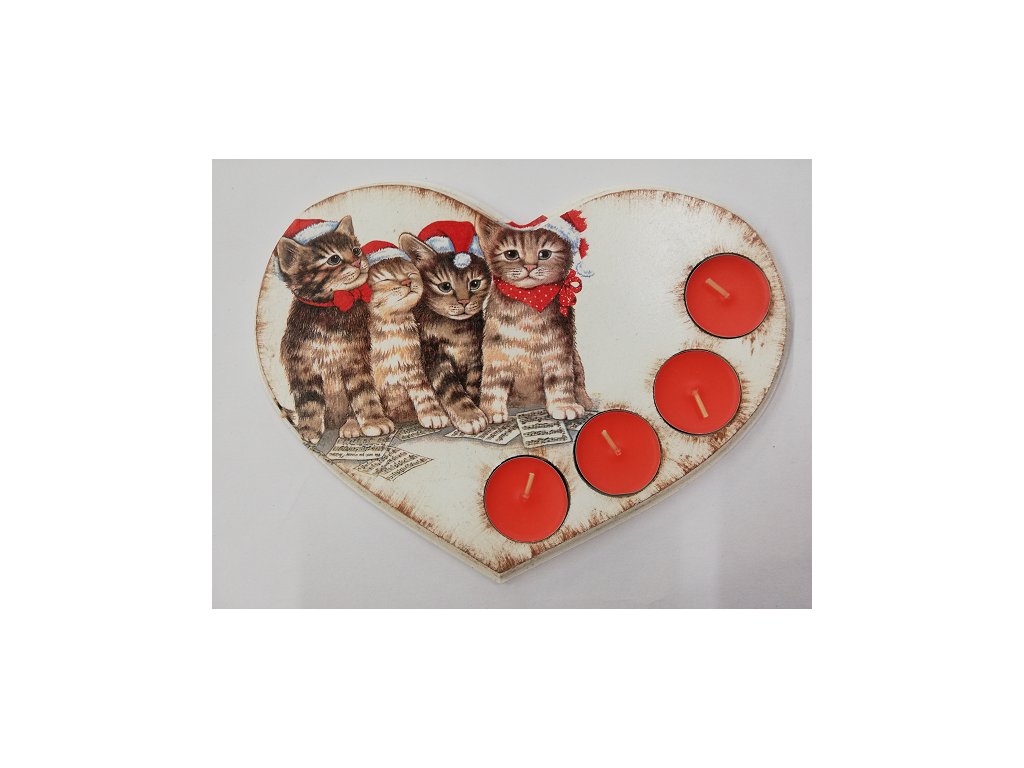 Krásný svícen s motivem vánočních kočiček na čajové svíčky