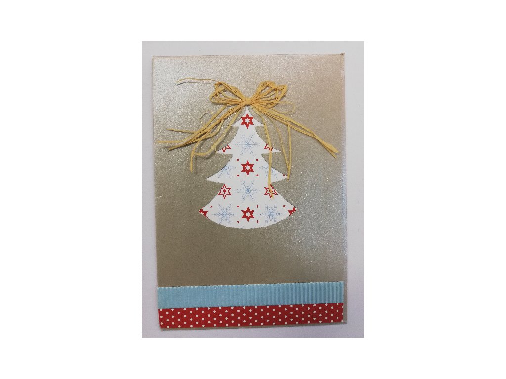 Ručně vyrobené klasické dvojité přání s dřevěným stromečkem.