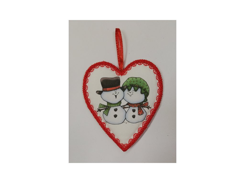 Látkové srdíčko bílé s červeným okrajem - Krásné Vánoce 10