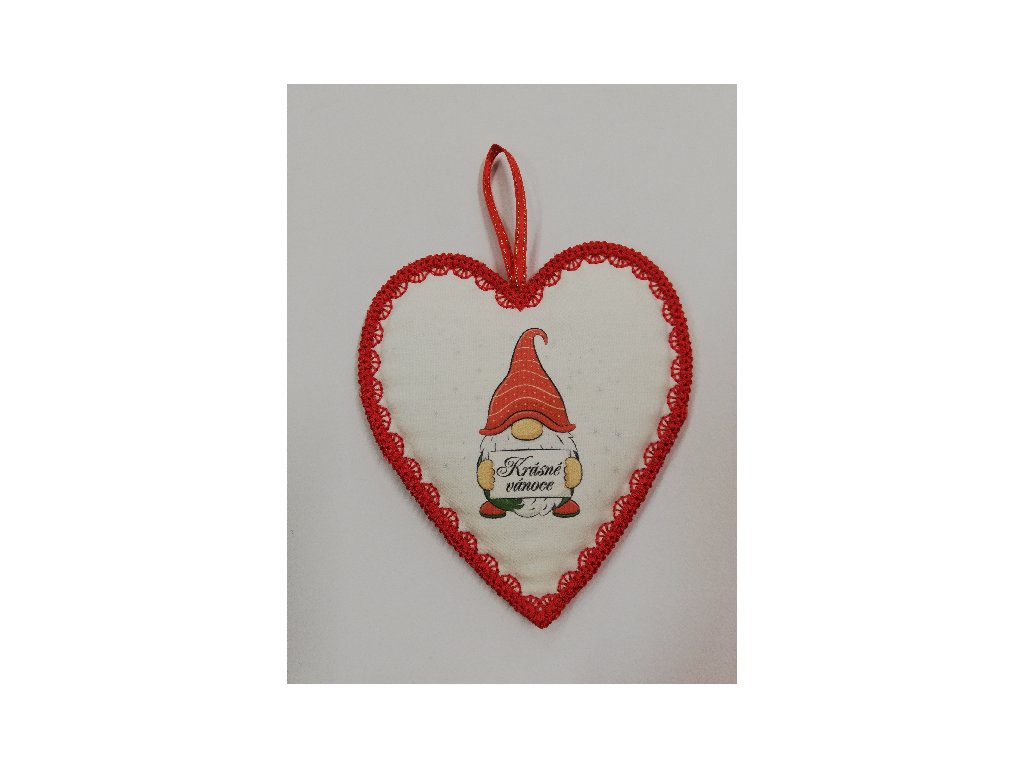 Látkové srdíčko bílé s červeným okrajem - Krásné Vánoce 2