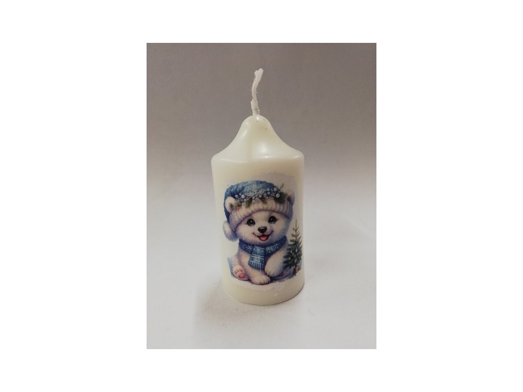 Svíčka z parafínového vosku - válec se špičkou pr.4,5 - Medvídek s čepicí 4