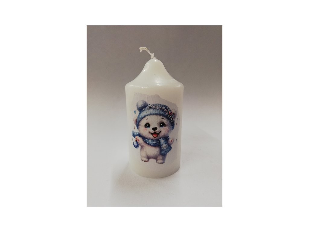 Svíčka z parafínového vosku - válec se špičkou pr.4,5 - Medvídek s čepicí 5