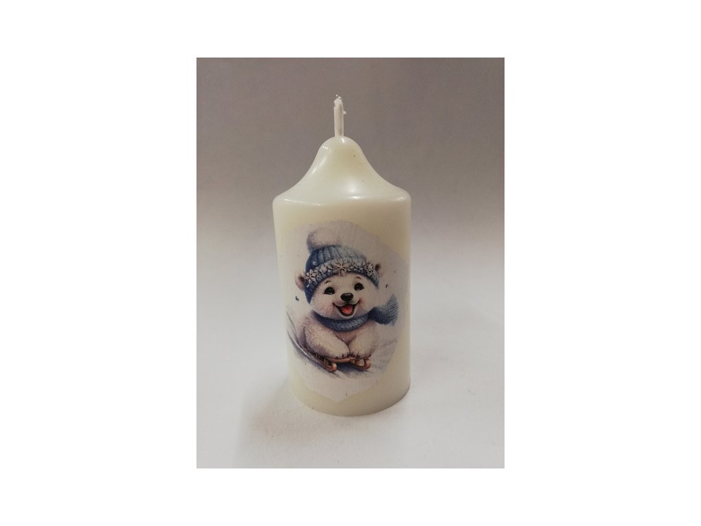 Svíčka z parafínového vosku - válec se špičkou pr.4,5 - Medvídek s čepicí 6