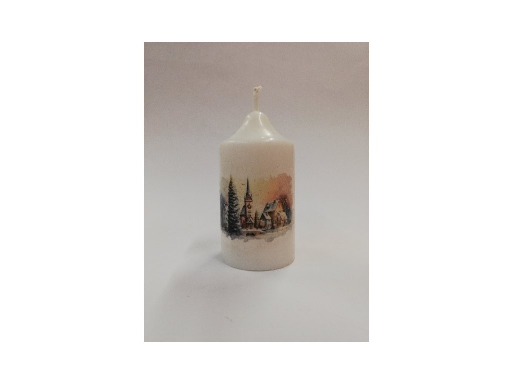 Svíčka z parafínového vosku - válec se špičkou pr.4,5 - zimní kostelík