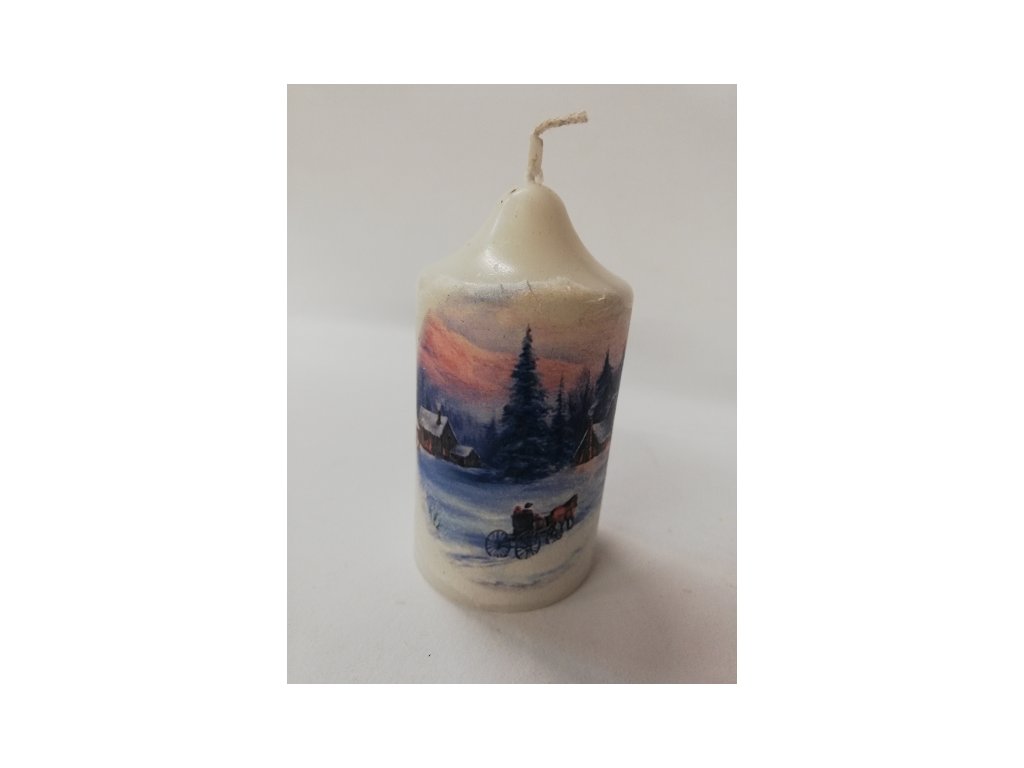 Svíčka z parafínového vosku - válec se špičkou pr.4,5 - zimní krajinka 1