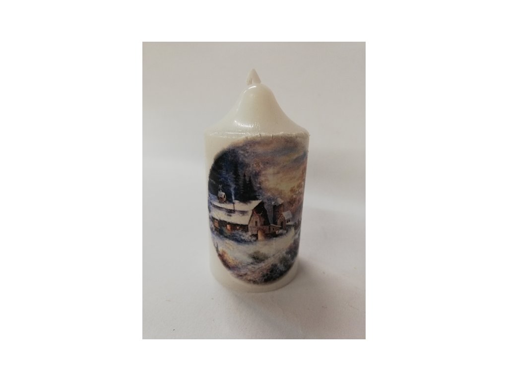 Svíčka z parafínového vosku - válec se špičkou pr.4,5 - zimní krajinka 2