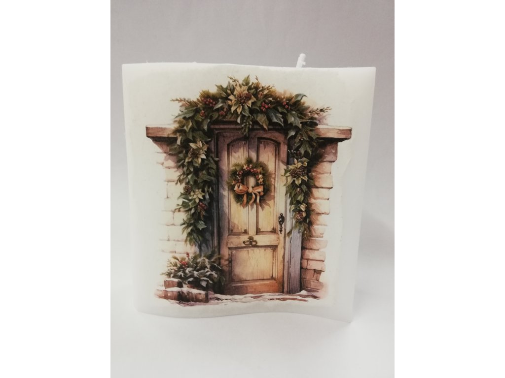 Svíčka z parafínového vosku zdobená - vlna 2 knoty 19 x 15 cm - Dveře zdobené