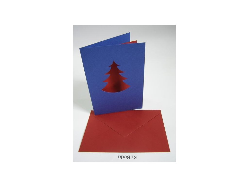 Vánoční přání 10,8 x 15,5 cm - stromeček - modrá/červená