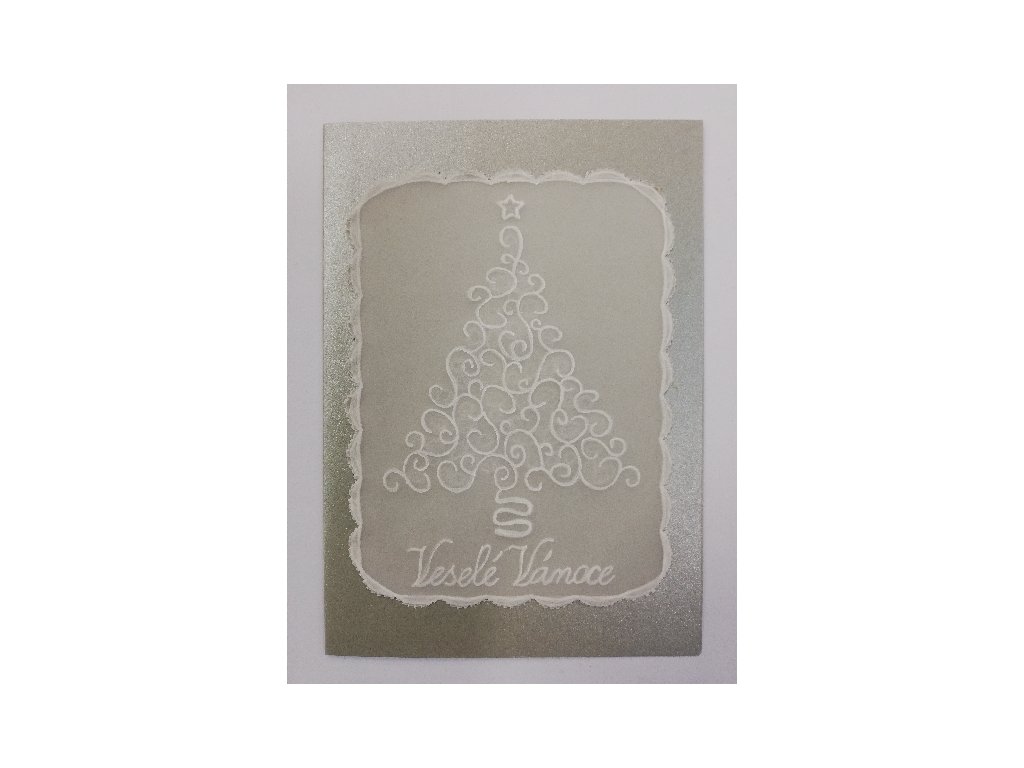 Vánoční přání 15x10,5cm - stříbrné + papírová krajka