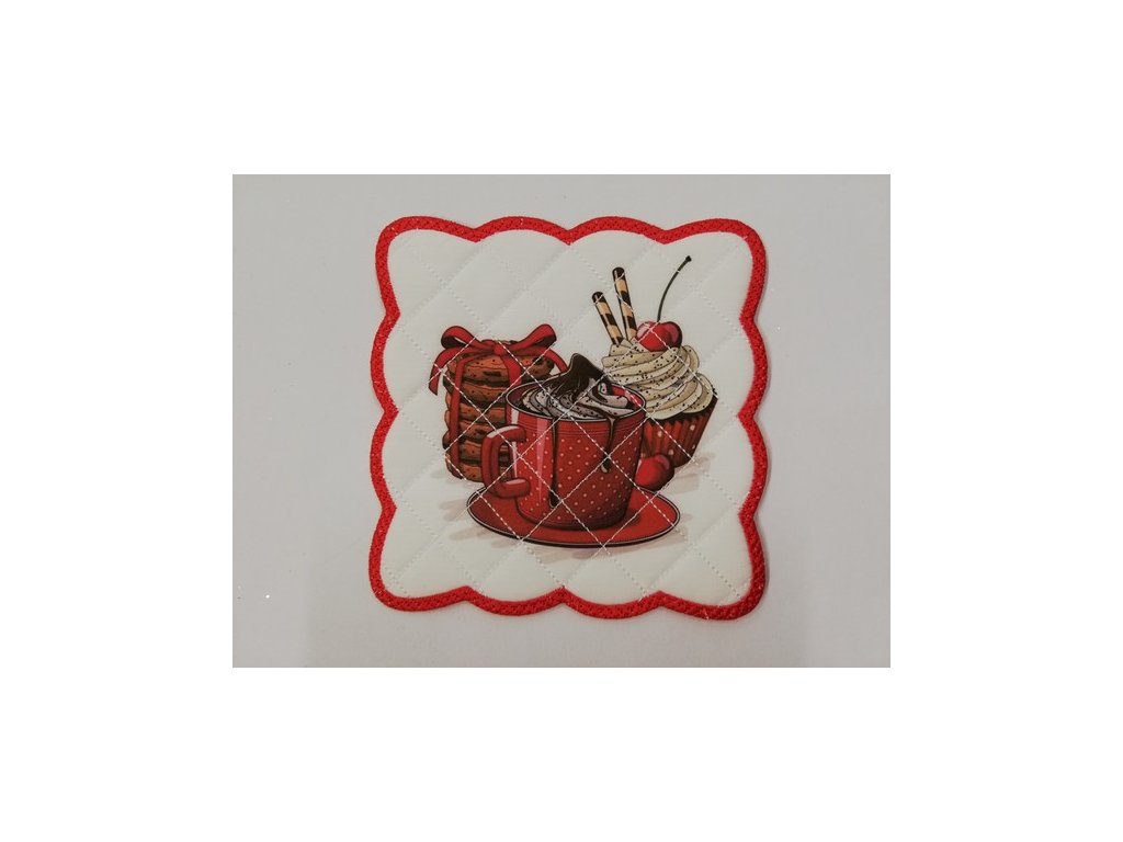 Vánoční textilní prostírání na stůl čtverec 15cm - vánoční motivy č.11