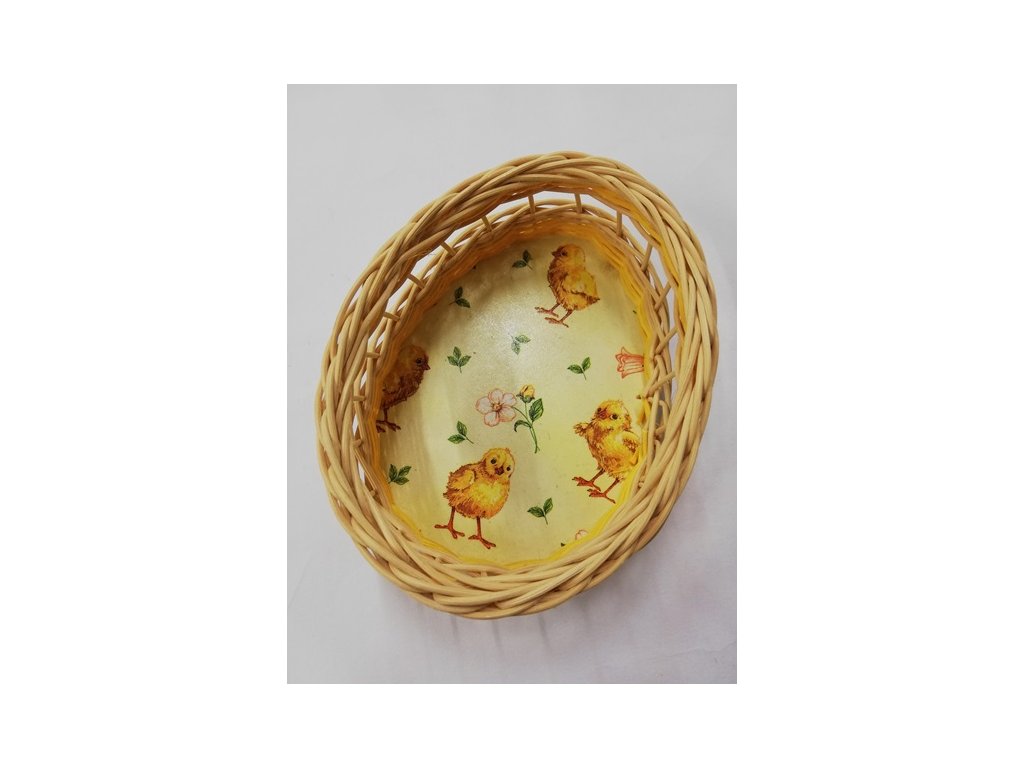 Košík ve tvaru vajíčka s motivem - kuřátka