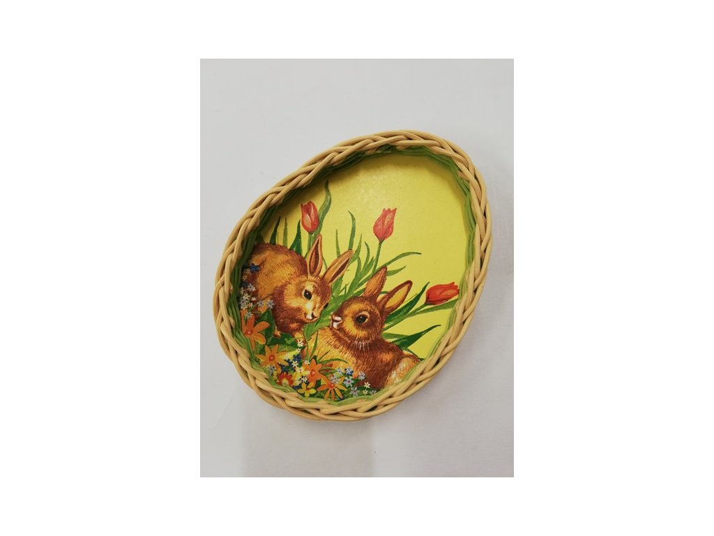 Košík ve tvaru vajíčka s motivem - zajíčci s tulipány