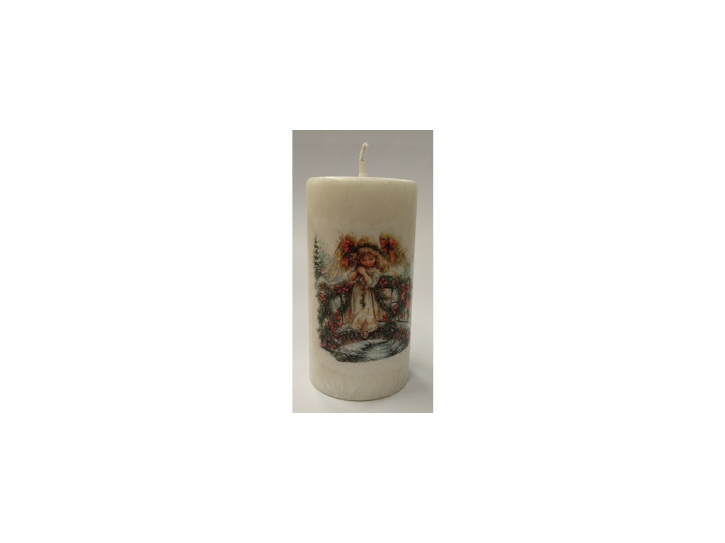 Svíčka palmová zdobená - válec 9,5 cm - Vánoční andělka