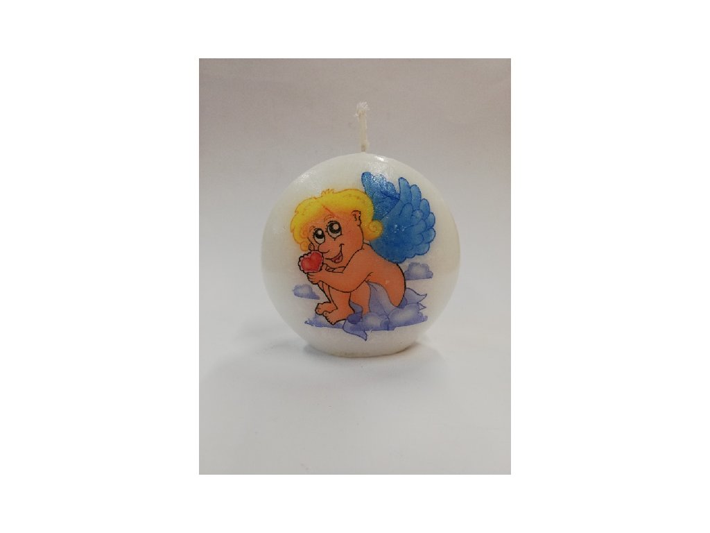 Svíčka parafínová zdobená - disk 10 cm - andílek na mráčku
