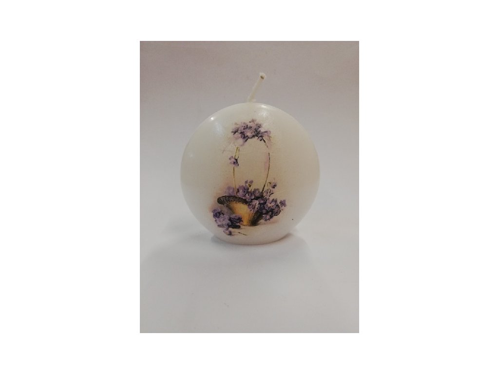 Svíčka parafínová zdobená - disk 10 cm - květiny v košíku