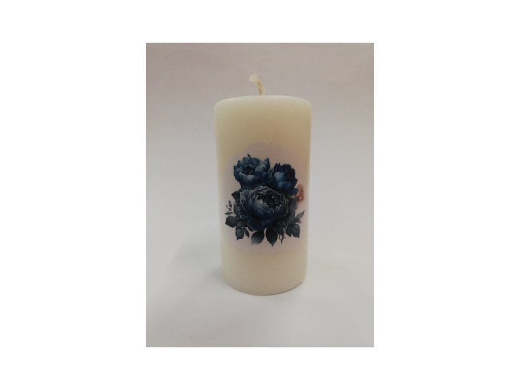 Svíčka z parafínového vosku zdobená válec 9,5 cm - pivoňky